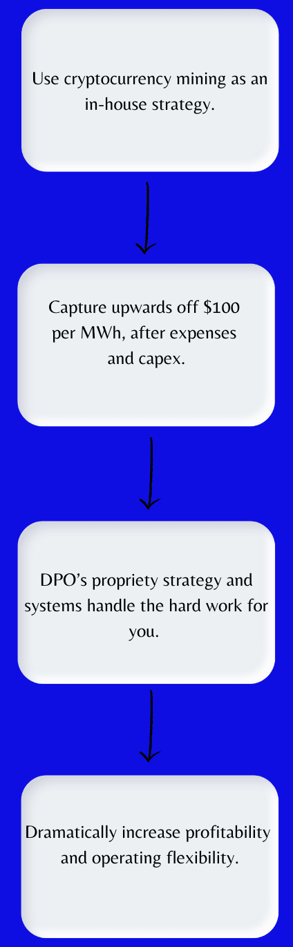 We believe there should never be another underutilized electrical generation asset given the immensely profitable and readily available use case of mining cryptocurrency. Furthermore, because of several specific and unique traits, cryptocurrency mining makes an almost perfect application for these types of uneven and variable power flows. DPO was created to help those companies and asset owners better manage the usage of their asset and maximize both operational efficiency as well as overall profitability.