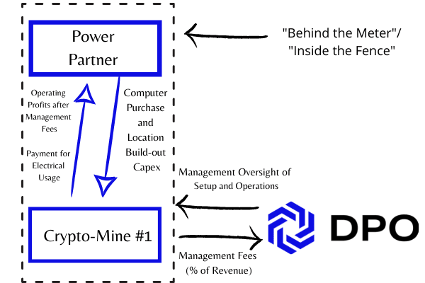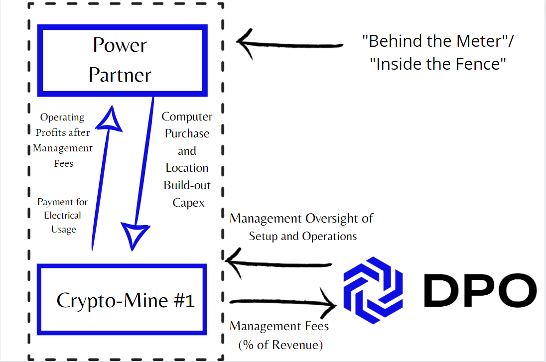DPO BELIEVES THAT THOSE BEST SUITED TO MINE BITCOIN AND OTHER CRYPTOCURRENCIES ARE POWER PRODUCERS THEMSELVES. IF YOU DON’T OWN OR CONTROL LARGE-SCALE POWER GENERATION OR TRANSMISSION ASSETS, YOU’LL SOON BE UNCOMPETITIVE IN THE CRYPTO MINING INDUSTRY, WHILE POWER PRODUCERS TAKE OVER. WE BELIEVE THAT THE INVESTMENT RISK IS FAR LOWER THAN THE MARKET UNDERSTANDS…IF YOU CAN PRODUCE YOUR OWN POWER. POWER PRODUCERS AND GRID OPERATORS CAN MAKE MORE MONEY WITH THIS STRATEGY AND WITH LESS RISK THAN ANY OTHER ENTITIES ON EARTH. DPO’S MISSION IS TO HELP EVERY POWER PRODUCER UNDERSTAND THIS, AND TAKE ADVANTAGE OF THIS INCREDIBLE OPPORTUNITY.